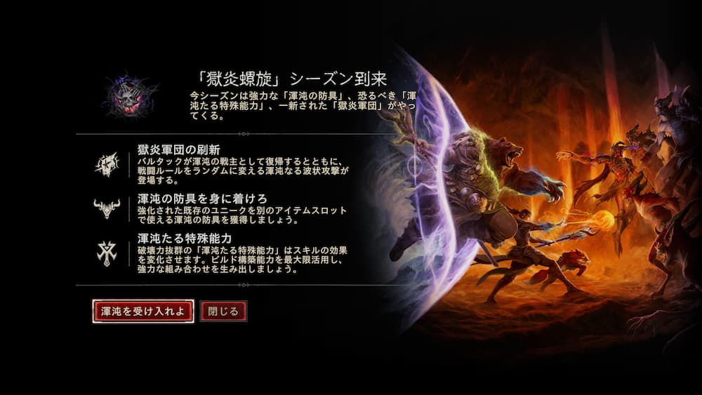 そんな、爽快な獄炎軍団の刷新とドロップにワクワクする渾沌防具が魅力な新シーズン。
