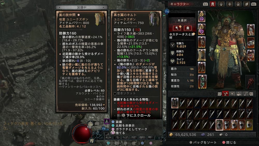 過去のシーズン同様に今シーズンもクラスごとに色々とユニークや化身が追加。上述もしたけど、ドルイドに関してはやはり黒き翼のキルトというカラスビルド用ユニークは面白かったと思う。